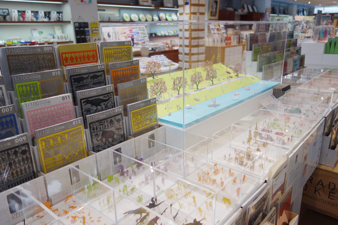 テラダモケイ全製品を販売する他、テラダモケイを使用した大型のディスプレイも
